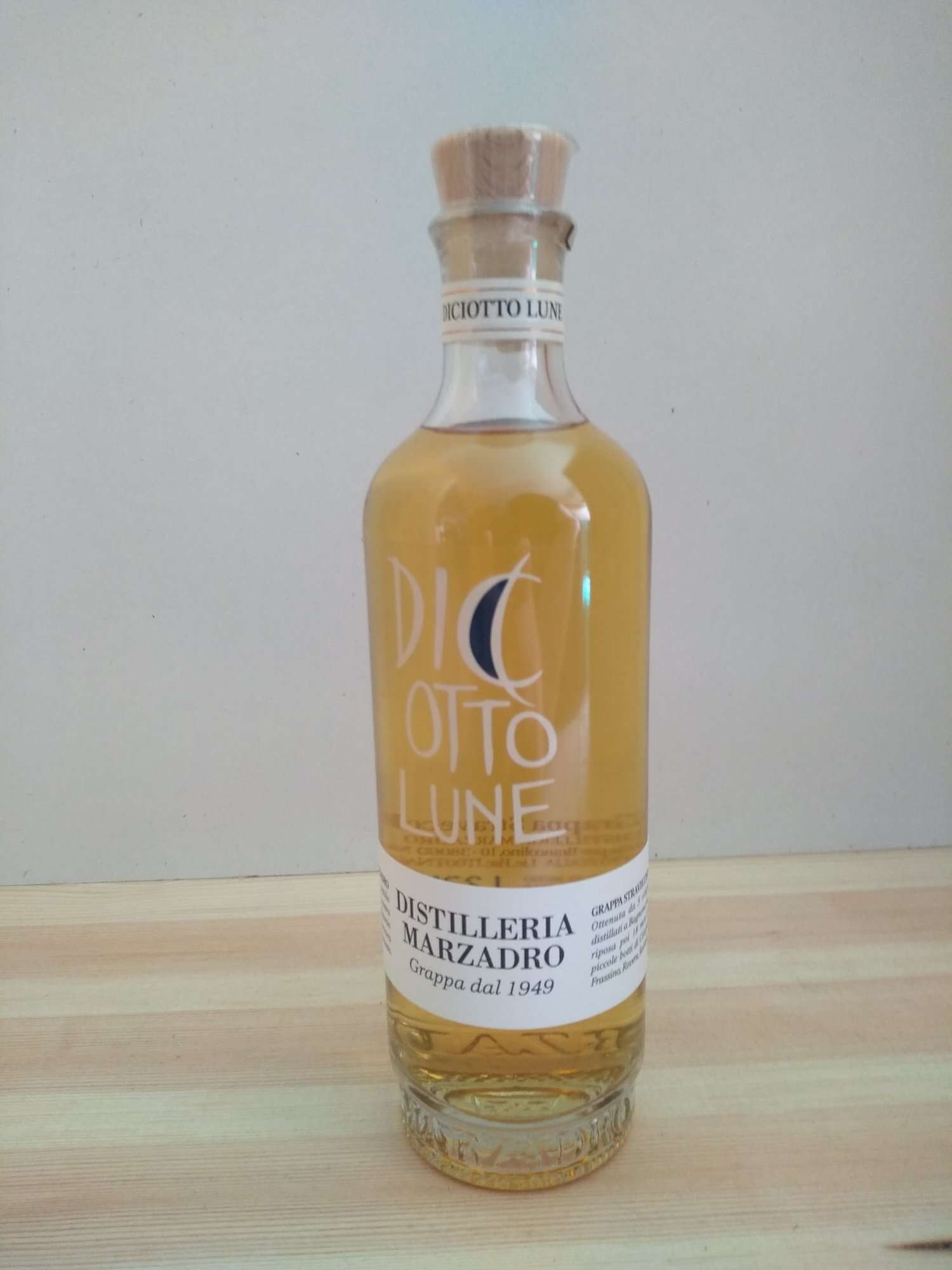 Dieser Grappa gilt als das Aushängeschild der Brennerei. Der Le Diciotto Lune wird hier als kleine Flasche mit 0,2 Liter Inhalt verkauft. Ideal um den Grappa zu testen und für die Reise. Gebrannt wird er aus den Trestern Marzemino, Teroldego, Merlot, Chardonnay und Muskat. Anschließend reift der Grappa in Eichenfässern aus Kirschholz, Eiche, Robinie und Esche. Nach achtzehn Monaten erfolgt die Abfüllung.